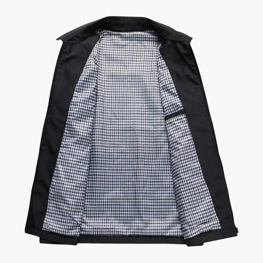 Denne herrejakke til efteråret tilbyder et mellemvægtigt ydre lag, der er ideelt til overgangsvejr. Den har en figursyet form med frontlynlås og et mesh-foret indre, der er velegnet til sæsonbrug. Ydersiden har en ensartet overflade med et rent udseende, der passer til daglig brug i byen eller afslappede udendørs aktiviteter.