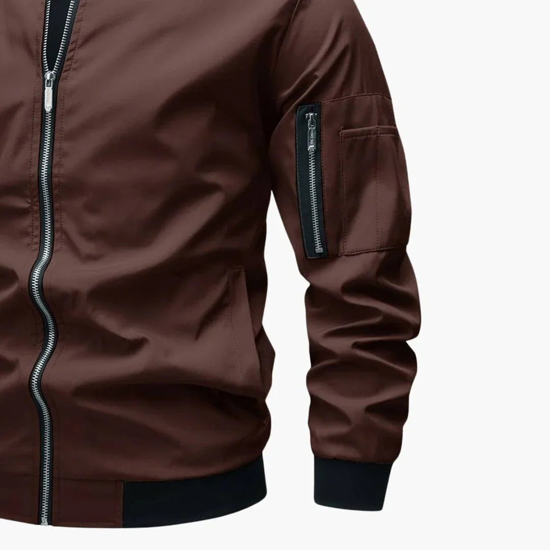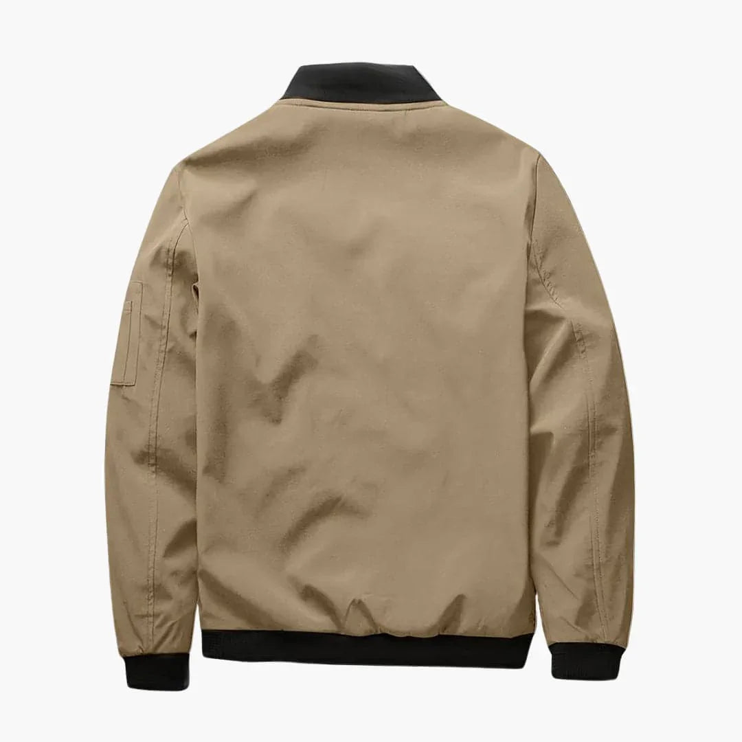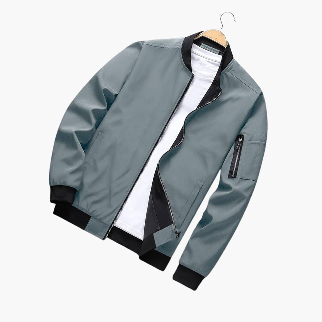 Denne bomberjakke til mænd er designet i klassisk bomberstil med gennemgående lynlås og funktionelle lommer. Det tynde materiale gør den passende til forår, sommer og efterår. Den er skræddersyet til mænd, der søger en overgangsjakke, der kan kombineres med forskellige outfits.